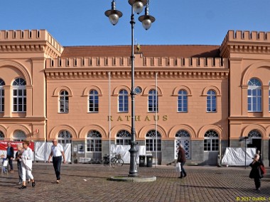 Schwerin - ehem. Altstädtisches Rathaus, Am Markt 14, in dieser Gestalt aus dem Jahre 1835 von Georg Adolph Demmlers - Goldener Reiter aus dem Jahre 1744 von Albert Paltzoss 02