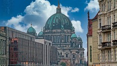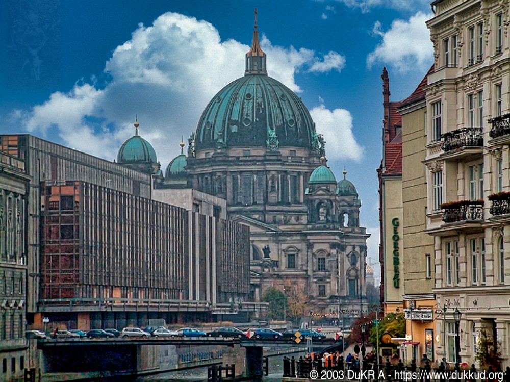 Berlin - Blick von der Mühlendammbrücke zum Palast der Republik und zum Berliner Dom