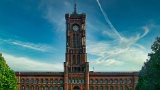 Berlin - Turm des Alten Stadthauses, Jüdenstraße 42, aus dem Jahre 1911 von Ludwig Hoffmann mit Fortuna aus dem Jahre 2004 von Bernd-Michael Helmich