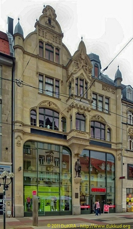 Erfurt - Wohn- und Geschäftshaus, Anger 33, aus dem 20. Jahrhundert - Bismarck-Haus mit Bismarck-Statue aus dem Jahre 2004 von Christian Paschold 02