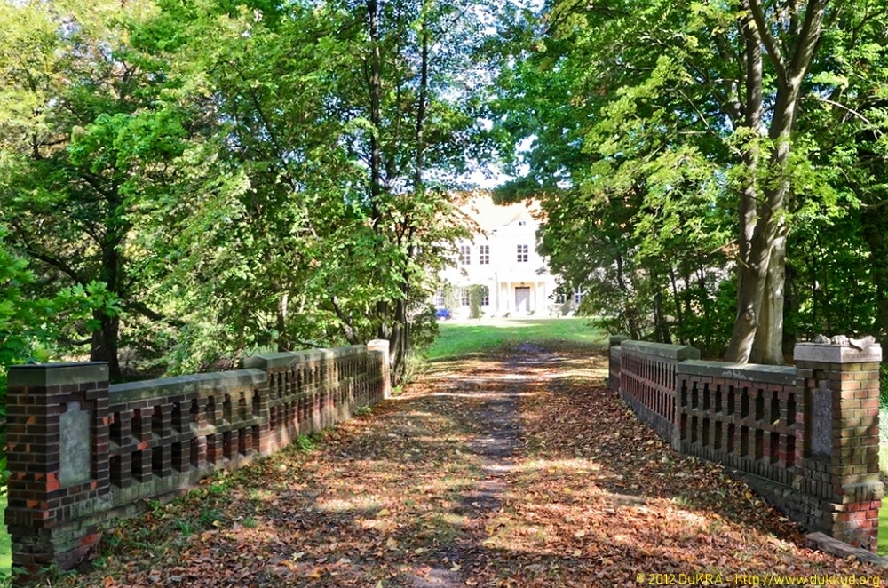 Hoppenrade - Schloss Hoppenrade aus dem Jahre 1724, Aufstockung des Mittelflügels im 19. Jahrhundert 04 - Schlossbrücke