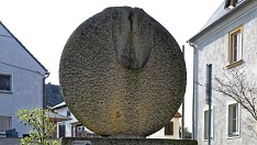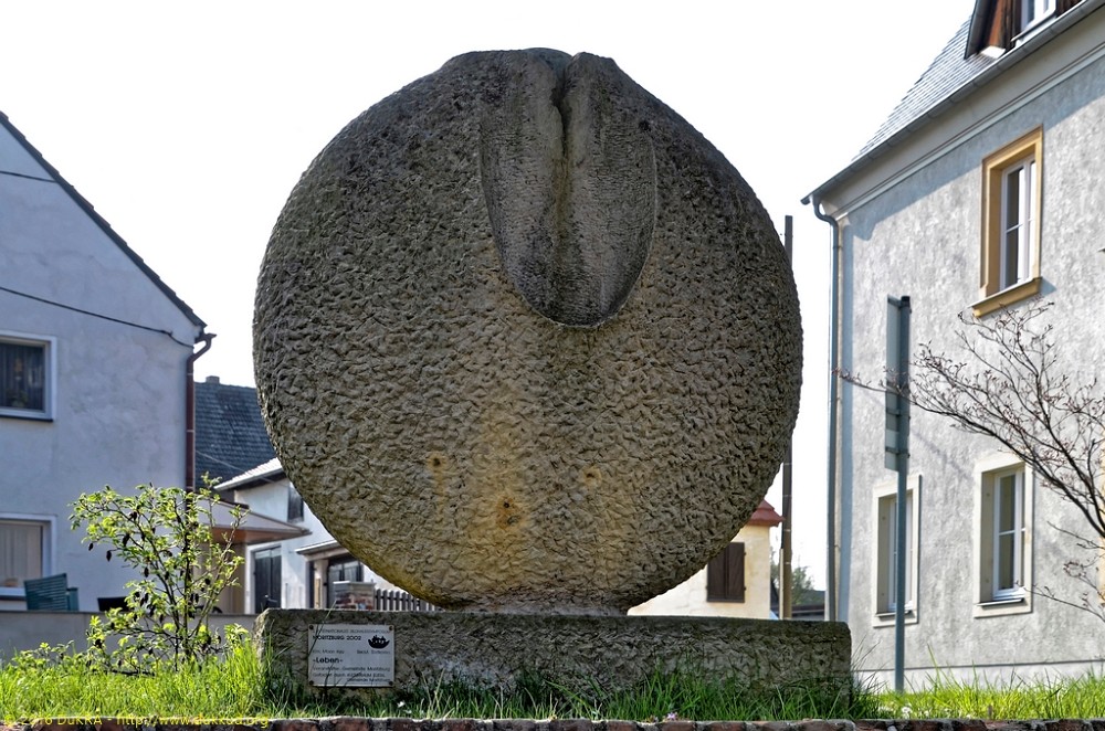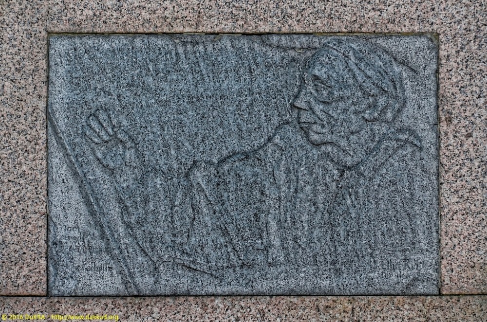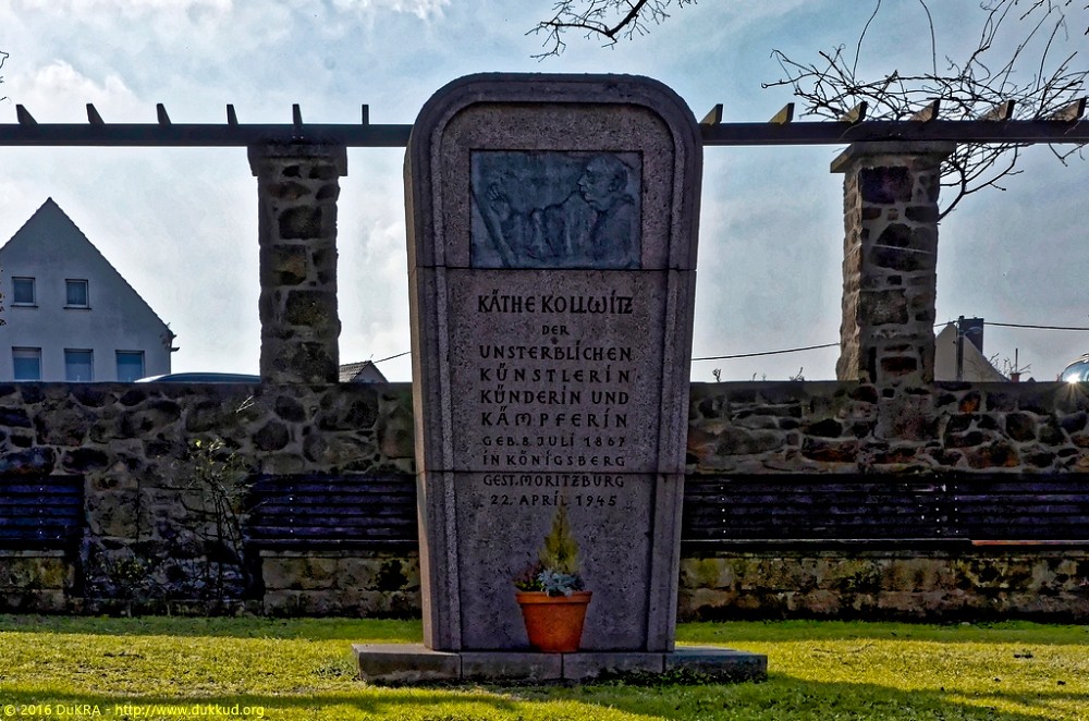 Moritzburg - Käthe-Kollwitz-Gedenkstein aus dem Jahre 1947 mit einem von Etha Richter entworfenen und von Rudolf Kreische ausgeführten Portraitmedaillon 02